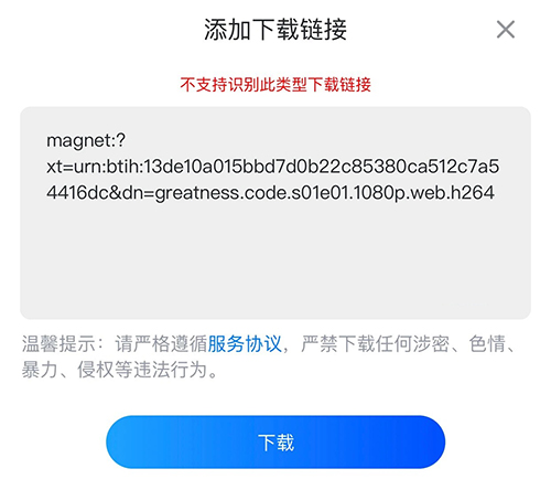 需要注意的是,以上方法只支持 http、https、ftp 开头的下载地址,无法直接复制磁力链接下载;