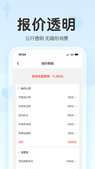 全国采用成本价定制婚礼的互联网婚庆平台,公开透明的婚礼报价明细清单。