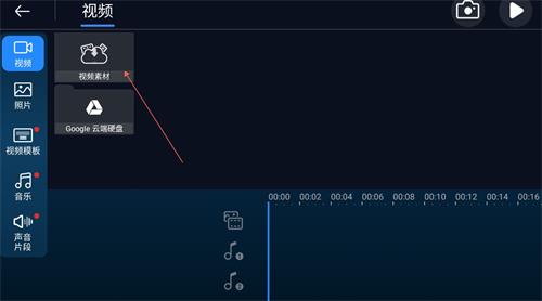2、选择好之后,进入剪辑界面,在这里你可以选择视频素材,照片或是视频模板和音乐。