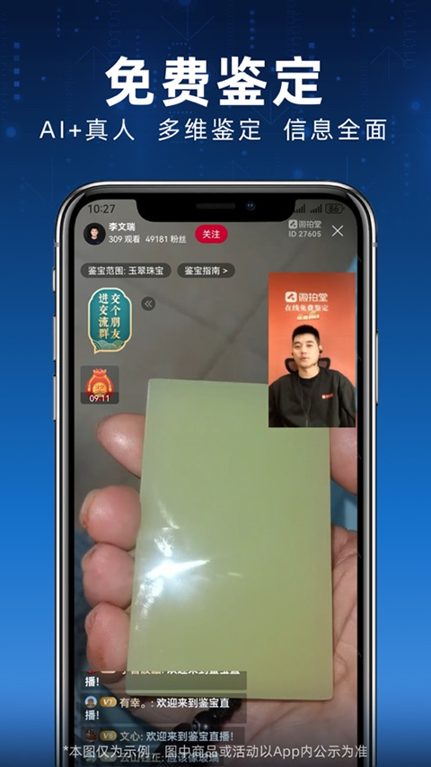 2、平台入驻近百名从业7年以上鉴定大师,为广大用户提供免费的1对1在线直播鉴定服务。