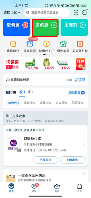 不用愁快递小哥什么时候送包裹,自提柜驿站代收,或预约快递小哥送件时间,收包裹更随心。