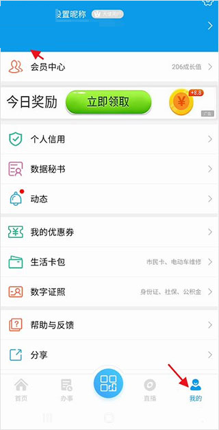 1、进入爱南宁app苹果版,选择相应的登录方式进行账号的登录,登录成功后,点击我的;