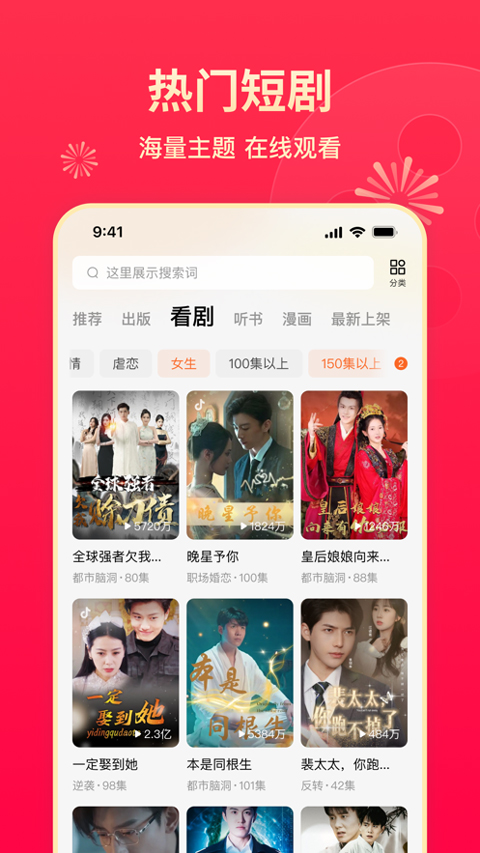 番茄小说苹果版是由北京臻鼎科技有限公司打造的一款看小说电子书的阅读神器,该软件主打正版的海量小说资源,让你看书不花钱,悠享阅读时光。目前资源丰富,囊括言情、穿越、青春校园、霸道总裁、宫斗、玄幻、修真、网游、科幻、异能、历史等各类题材。在其中,你可以快速查找想看的小说,享受体验极佳的阅读服务。