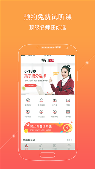 掌门一对一辅导ios版是由上海掌小门教育科技有限公司开发的一款线上学习软件,前身是由清华、北大、交大、浙大、复旦精英联合创立的状元俱乐部。通过该软件孩子和老师可依据自己的时间自由约课,足不出户,接通网络即能随时上课,免去家长接送辛苦。软件与前沿大数据结合,研发出独有的教学场景,再通过收集和分析学生日常学习、练习、测评等完成情况的数据,精准定位每个学生知识点的掌握情况,形成每个学生的个人知识图谱和个人学习路径,为给孩子提供更加个性化的高品质教学服务。同时,掌门一对一的教育系统涵盖了电脑、平板、手机、电视等多终端,并积极利用大数据和深度学习GPU集群作为基础,不断升级优化3.0智能化学习系统,教学实力和服务备受广大家长学生肯定。