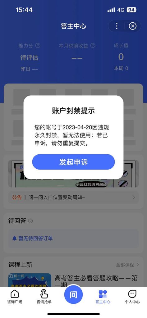 答主账号被永久封禁了,辛辛苦苦答了一个多月拿不到应得的收益?申诉解封没有结果,四处维权却一拖再拖?
