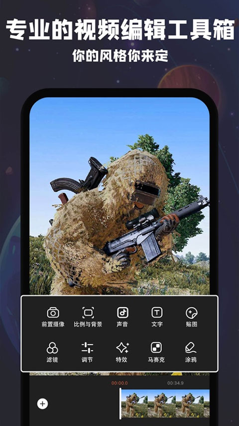 -视频编写制做,适用视频剪接,合拼切分,快放、慢放、反放、背景音乐、配声、打码软件、去除水印,加上主题、动画特效、ps滤镜、外挂字幕、动态贴纸,强劲的视频编写作用。