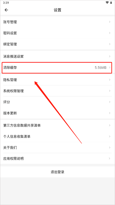 2、进入设置之后,点击“清除缓存”。