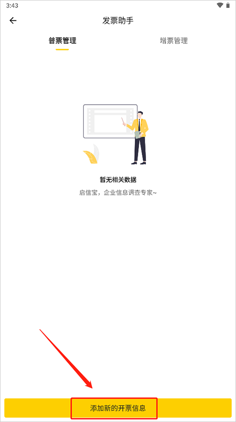 2、进入开票管理点击下方的“添加新的开票信息”。