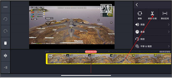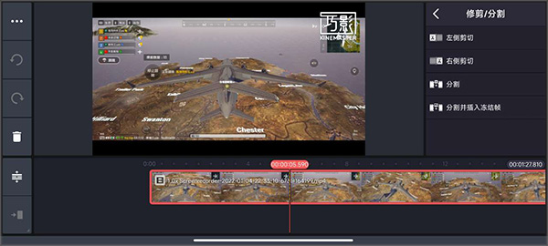 2、你可以选择左侧剪切、右侧剪切、分割和分割并插入冻结帧。滑动下方的视频,按照你需要剪切的位置,点击即可裁剪。