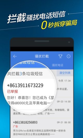 4、业内最全的号码库,0秒识别骚扰短信、电话。