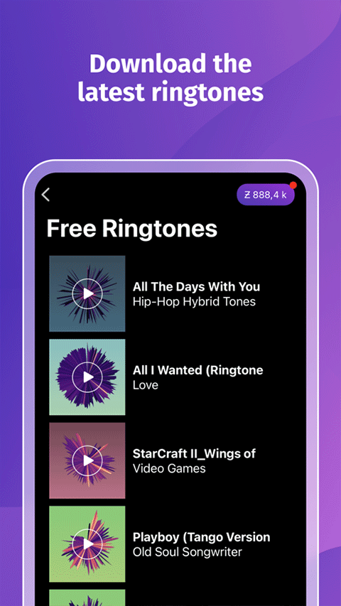 zedge苹果版是一款非常优质的高清壁纸神器,这里内置了海量精美壁纸供你选择,能够让你的手机桌面更具有个性,且有许多热门铃声和主题,可以为手机设置来电铃声、消息提示音,超级好用,无论你是喜欢娱乐、风景、动漫、动物类型,还是游戏、爱情、搞笑等类型,统统都能找到。同时该软件不仅允许您预览和下载数百万种铃声、提示音和闹钟,让您的所有设备都具备个性化的声音,而且还允许您自由的编辑铃声,可将喜欢的元素都剪辑到一起,并分享给自己的朋友使用哦。