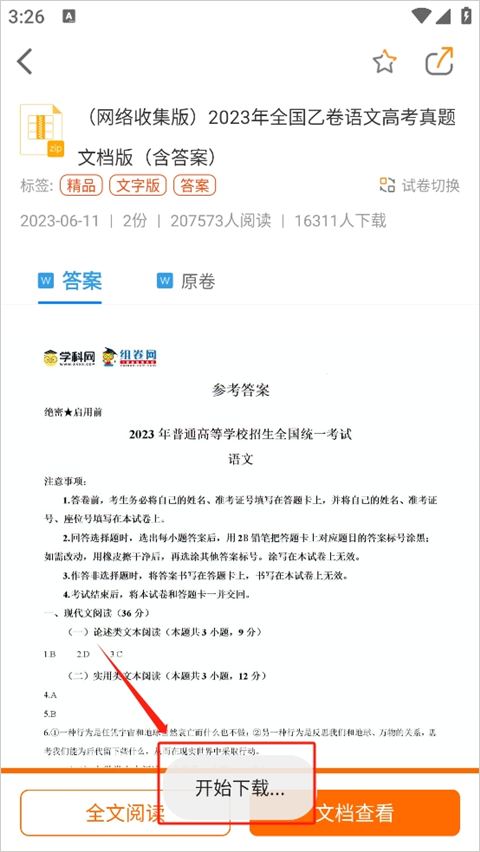 2、选择自己想要的试卷,点击“文档下载”。