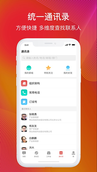 员工通讯录,可以直接在这里找到自己同事的联系电话;