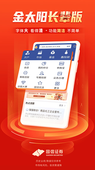 5、投顾服务:集合国信精英投顾团队和金融科技,提供旗舰级资讯及投研、一站式投资方案、服务讲解和精英型投顾组合,满足客户日常投资的各类需求;