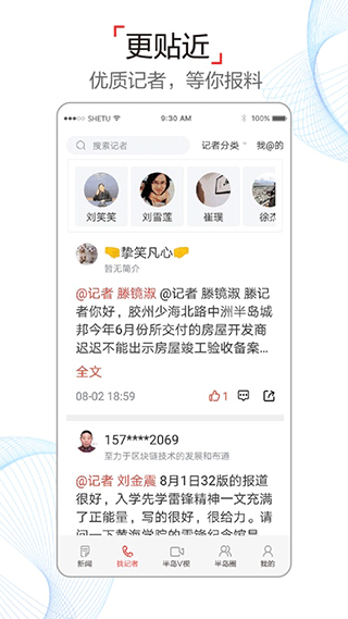 在“半岛圈”板块,可以看看微信公众号都有啥消息,有来有往聊聊天。作为用户,还可以通过“报料”板块与我们交流,反映问题、提供新闻线索和新闻现场的图片、视频,采用后我们将为你奉上50~500元不等的现金奖励!